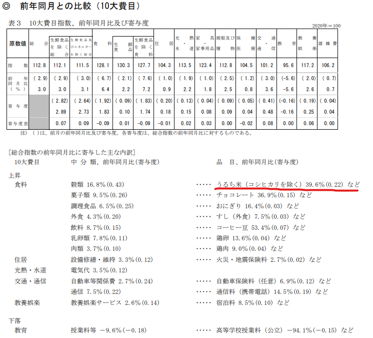 今まで通り、見出しの数字はインフレが強そうな印象を受けますが、中身を見てみるとやはりお米の価格高騰が異常なだけですね。それほど、日本人の主食であるお米が日銀の金利上昇の口実として利用されているように思います。
